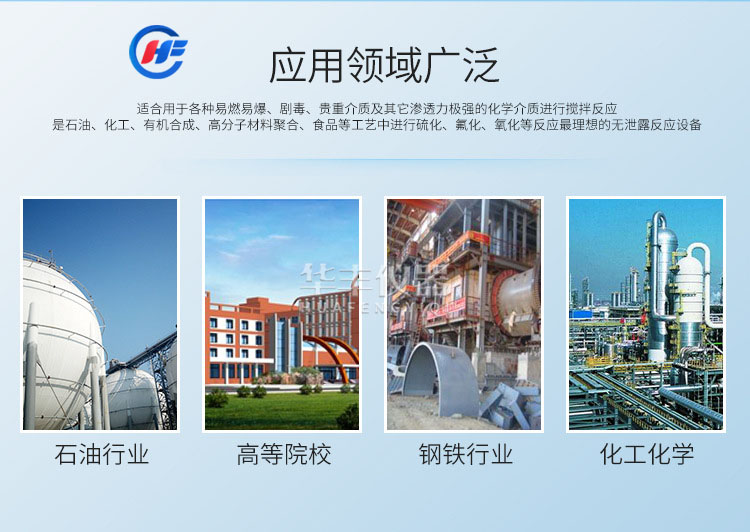 FCF不銹鋼升降反應釜 主要特點采用靜密封結構,攪拌器與電動傳動間采用磁力偶合器連接,由于其無接觸的傳遞力矩,以靜密封取代動密封,能徹底解決攪拌存在的匯漏問題,使整個介質和攪拌部件完全處于密封的狀態中進行工作,因此,更適合用于各種易燃、易爆劇毒、貴重介質及其它滲透力極強的化學介質進行攪拌反應,是石油、化工、有機合成、高分子材料聚合、食品等工藝中進行硫化、所氟化、氧化等到反應理想的無泄漏反應設備。