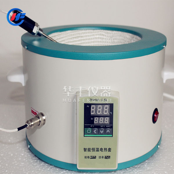 ZNHW(5L—50L)型 數(shù)顯恒溫電加熱套是用無堿玻璃纖維作絕緣材料,將Cr20Ni80合金絲簧裝置于其中,用硅酸鋁棉經(jīng)真空定型的半球形保溫體保溫,外殼一次性注塑成型,上蓋采用靜電噴塑工藝,由于采用球形加熱,可使容器受熱面積達(dá)到60%以上?販夭捎糜嬎銠C芯片做主控單元,采用多重數(shù)字濾波電路,模糊PID控制算法,具有測量精度高,沖溫小,單鍵輕觸操作,雙屏顯示,內(nèi)、外熱電偶測溫,可控硅控制輸出,160-240V寬電壓電源,并有斷偶保護(hù)功能,具有升溫快、溫度高、操作簡便、經(jīng)久耐用的特點,是做控溫加熱試驗的理想儀器。